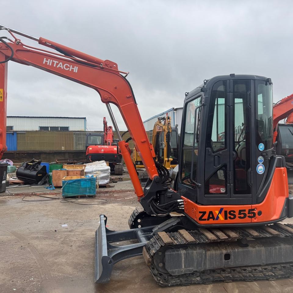Mini-excavatrice hydraulique Hitachi ZX55 d'occasion, capacité de 5 tonnes, comprenant moteur, boîte de vitesses, pompe à engrenages, roulement, PLC, directement du Japon