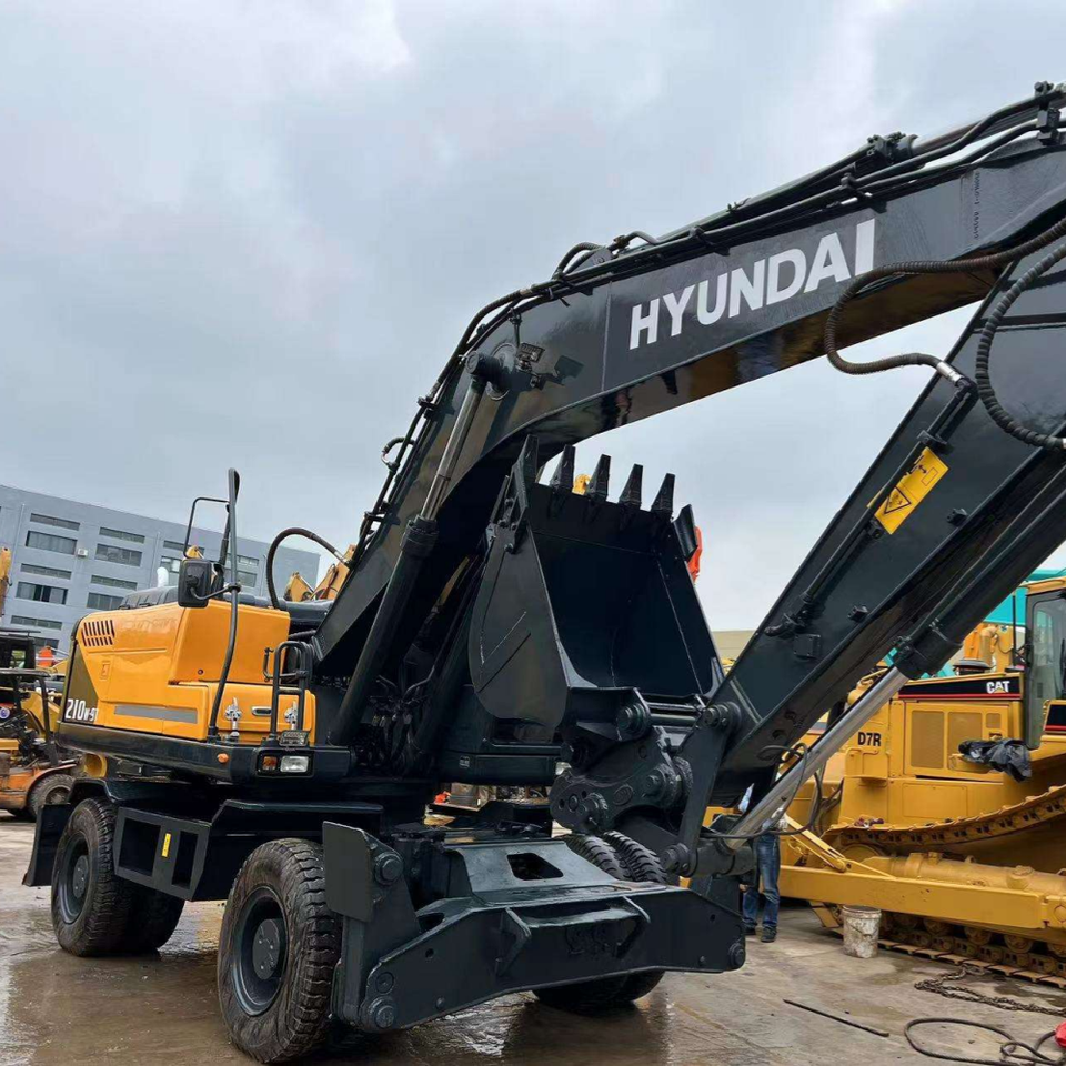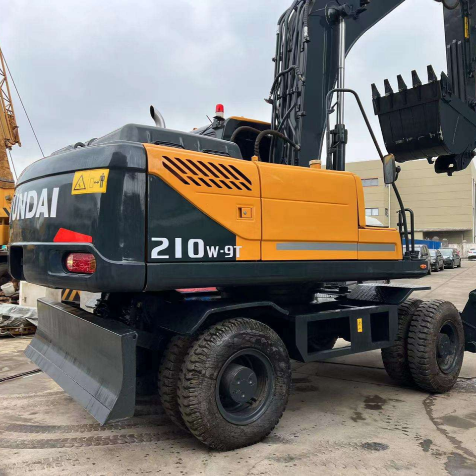 Excavatrice sur pneus Hyundai 210W-9T d'occasion, modèle 2023, poids opérationnel de 21 tonnes, moteur, boîte de vitesses, pompe, roulement, prix compétitif