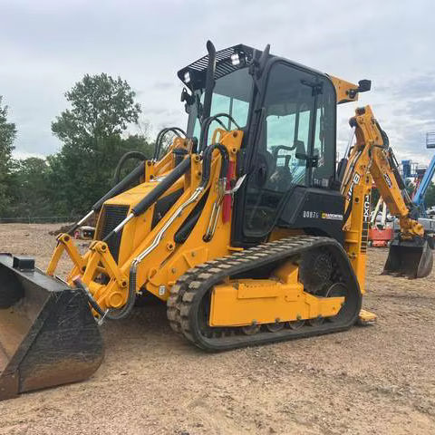Chargeuse-pelleteuse sur chenilles d'occasion JCB 1CXT-HF, modèle 2023, avec moteur à haut rendement énergétique 75KW, boîte de vitesses et pompe.
