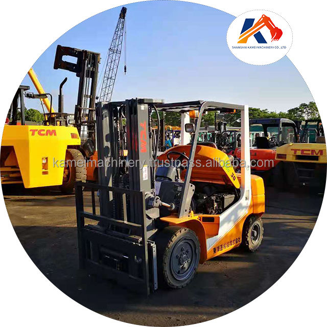 Chariot élévateur diesel d'occasion TCM FD30 d'origine japonaise, 3 tonnes, avec boîte de vitesses à 3 étages, moteur pour usage commercial, type manuel, transmission intégrale (AWD)
