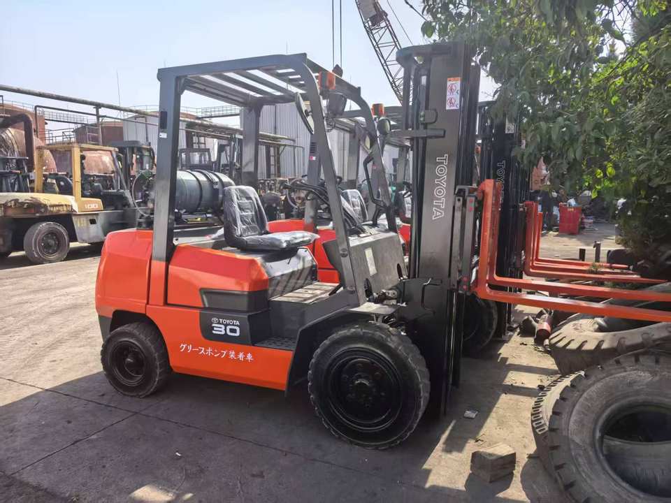 Chariot élévateur Toyota d'occasion, à GPL, modèle Fgzn 2.5/3/4/5/7/10/15/16/25/30 tonnes, triple levage, déplacement latéral.