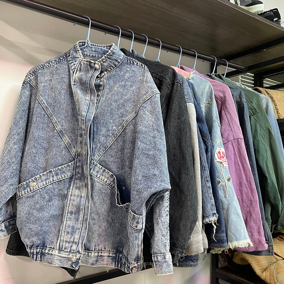 Jeans, T-shirts, Vestes, Casquettes d'occasion en balles, couleurs assorties (Denim, Bleu, Noir, Blanc), vêtements de seconde main pour la revente en gros