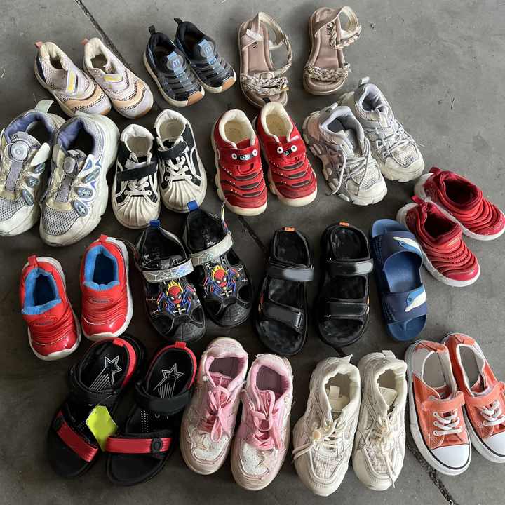 Vente en gros de chaussures d'occasion pour enfants au kilo, lot de chaussures d'occasion pour enfants mélangées pour la revente, chaussures pour enfants en vrac, 25 kg par sac
