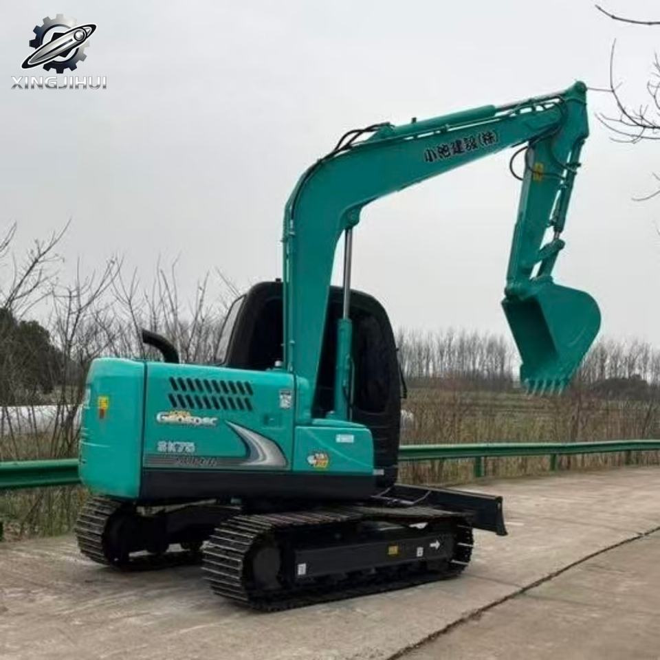 Mini-excavatrice sur chenilles Kobelco75 d'occasion, 7 tonnes, godet de 0,4 m³, marque japonaise d'origine, petite excavatrice de chantier, faible nombre d'heures, bon état