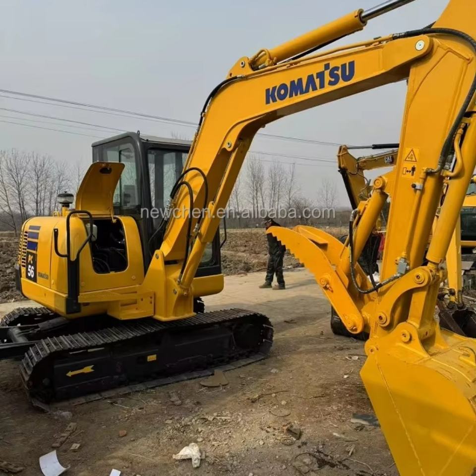 Mini-excavatrice Komatsu PC56 d'occasion de 5,6 tonnes avec moteur, boîte de vitesses, pompe, PLC, moteur, roulement à billes et garantie d'un an