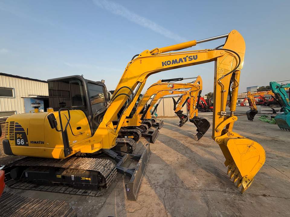 Mini-excavatrice Komatsu PC56 d'occasion, excellent état, adaptée à la construction et à l'agriculture