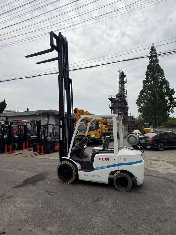 Chariot élévateur à fourche de chantier lourd Komatsu TCM FD25T3 d'occasion, 3/5/7/8/10 tonnes, avec mât à trois étages à haute efficacité, moteur diesel