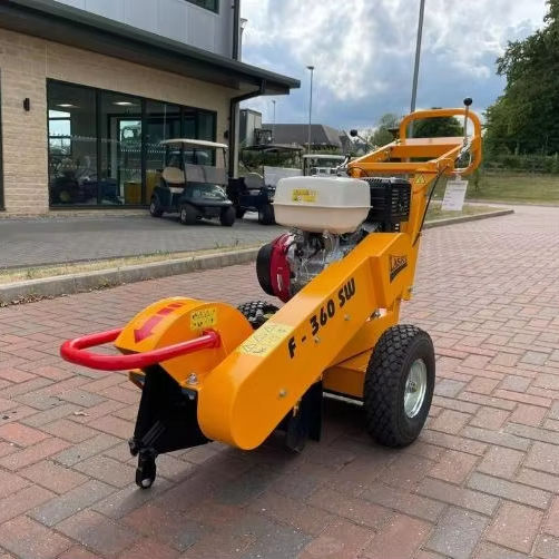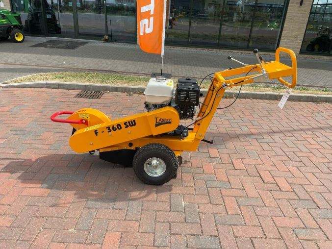 Broyeur de souches à essence LASKI F360SW d'occasion, profondeur de 14 pouces avec pivot central, moteur et engrenages pour une utilisation à faible fatigue