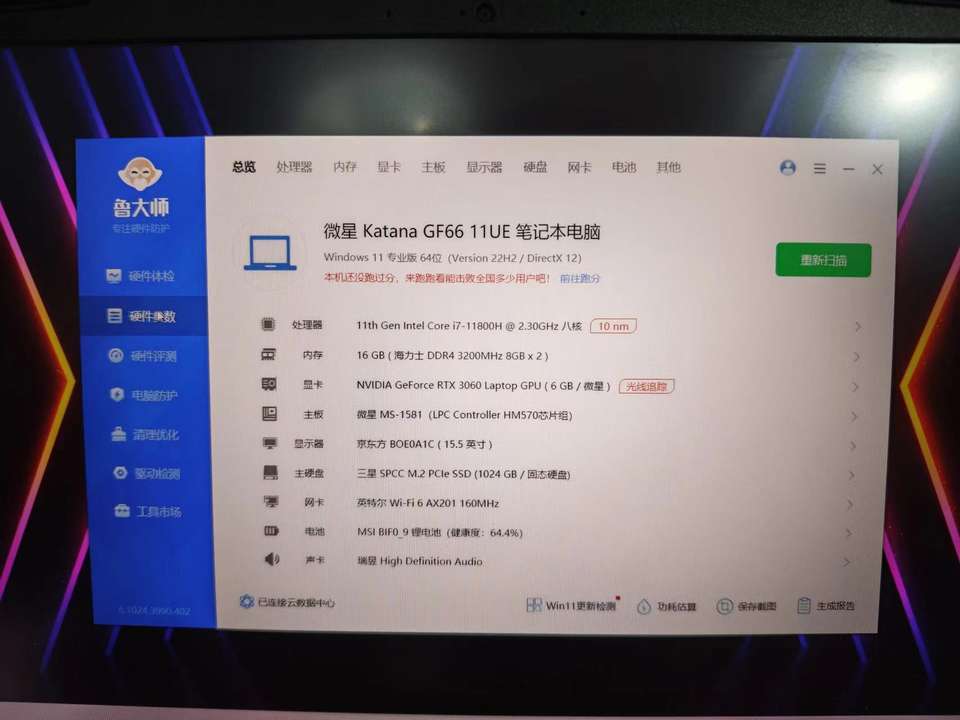 Ordinateur portable d'occasion MSI GF66 I7-11800 RTX 3060 GPU 16 Go de RAM 1 To Ordinateur portable de jeu haute performance