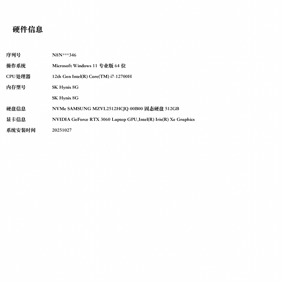 I7-12700H, RTX 3060, Résolution 2560*1440
