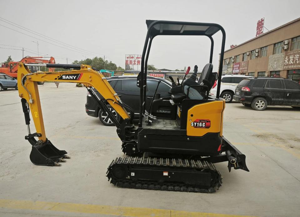 Mini-excavatrice SANY SY16C d'occasion, moteur Yanmar 1.8T, faible consommation de carburant, capacité de la benne de 0,04 m³, 1000 heures, travaux municipaux et aménagement paysager