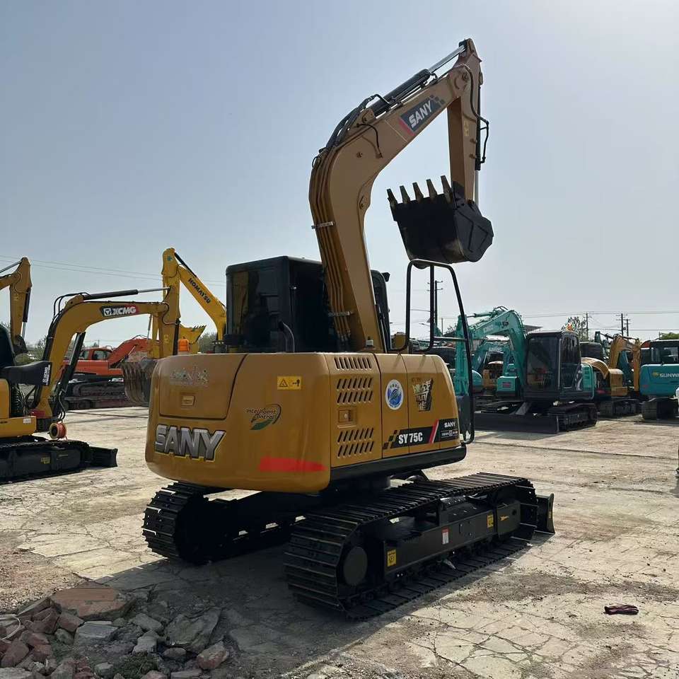 Excavatrice sur chenilles compacte Sany SY75C 7,5 tonnes d'occasion, modèle 2022, haute performance pour travaux de terrassement avec moteur et boîte de vitesses