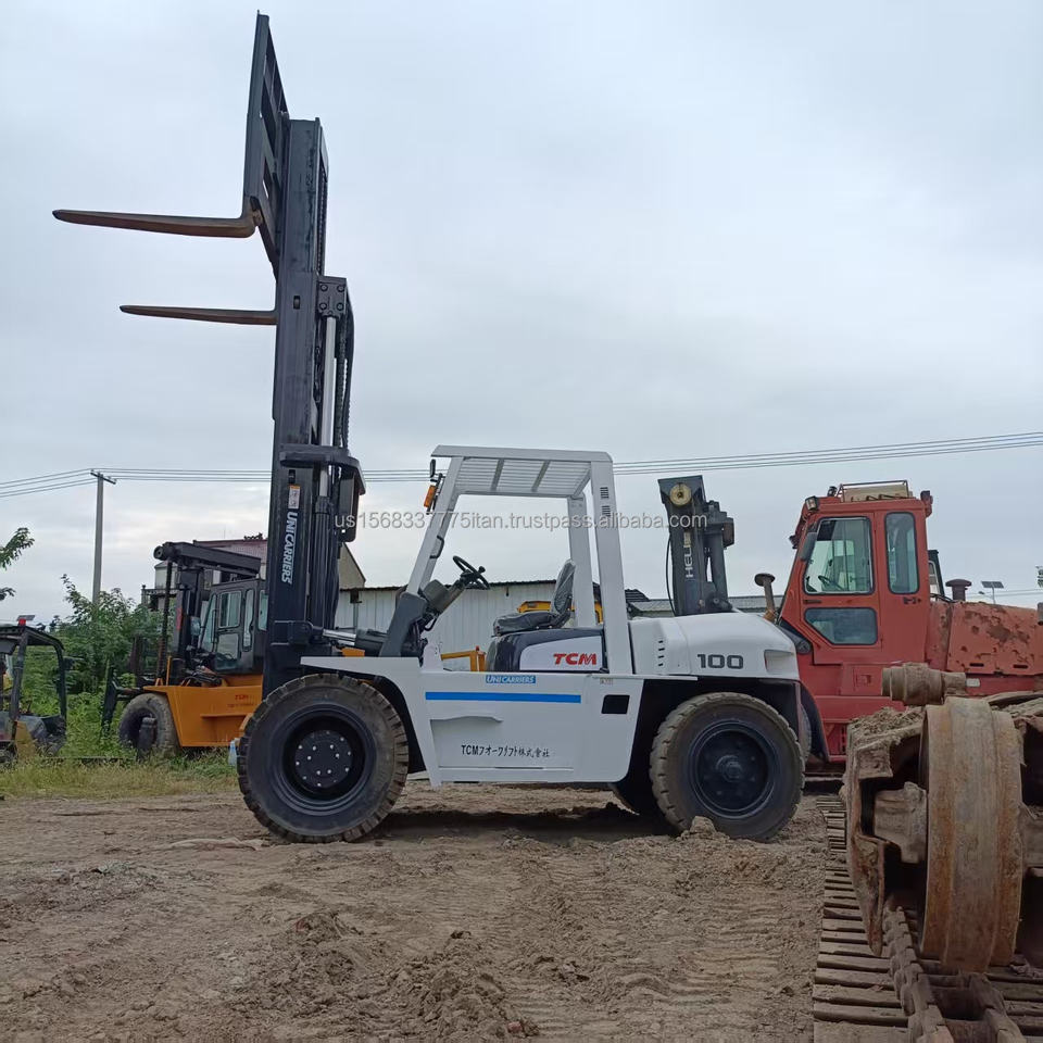 Chariot élévateur TCM 10 tonnes d'occasion avec 3m 4.5m d'étages et composant principal de moteur diesel d'occasion à changement de vitesse latéral en stock