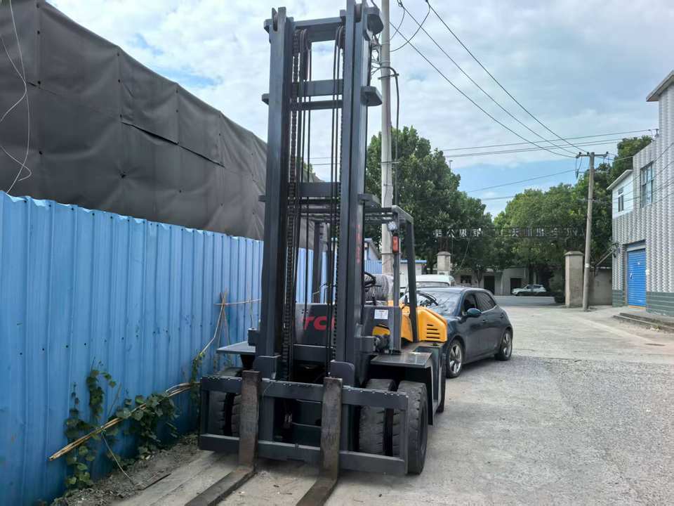 Chariot élévateur TCM 7 T d'occasion, moteur diesel à mât à 2 étages de 7 tonnes, faible durée, hauteur de levage de 6000mm, bien entretenu, prêt à fonctionner