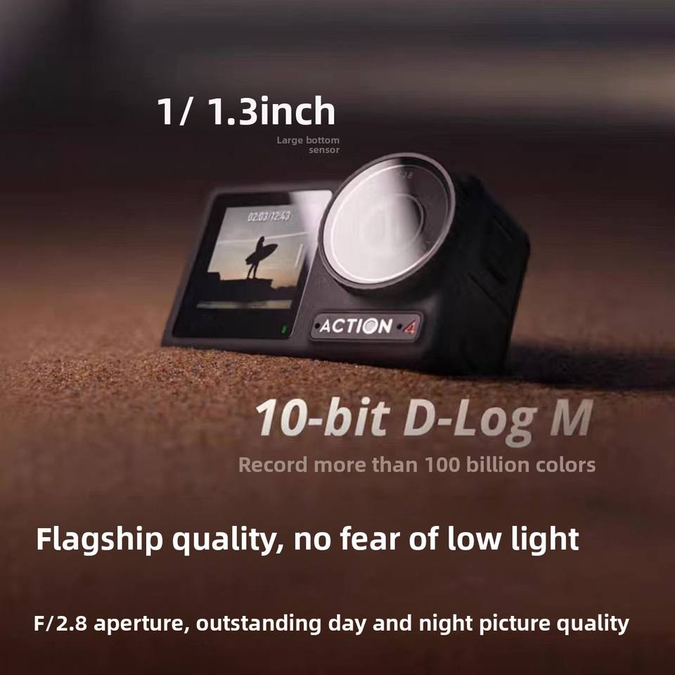 DJI Action 4 Standard — caméra d'action 4K/120 fps 155°, 1/1.3″ CMOS 10-bit D-Log M, autonomie 160 min, étanche 18 m