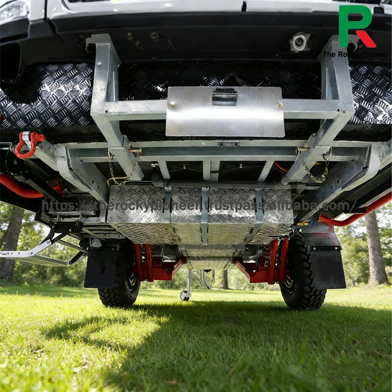 Utilisé en Chine : Remorque tout-terrain pour le transport de matériel, conçue pour l'aventure et le transport d'équipements, avec un espace de garage dédié et une protection.