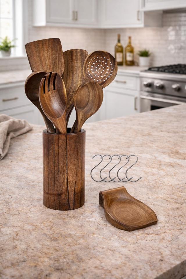 Ustensiles de cuisine en bois, outils de cuisine, accessoires de cuisine, ensemble d'ustensiles