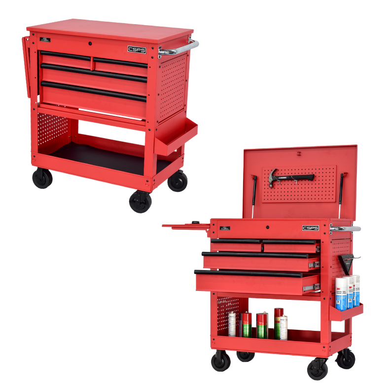 Utility Cart 84Cm 04 Drawers Powder Coated Steel Capacity 320 Kgs Warehouse Rolling Tool Box for Mechanic Garage Industry