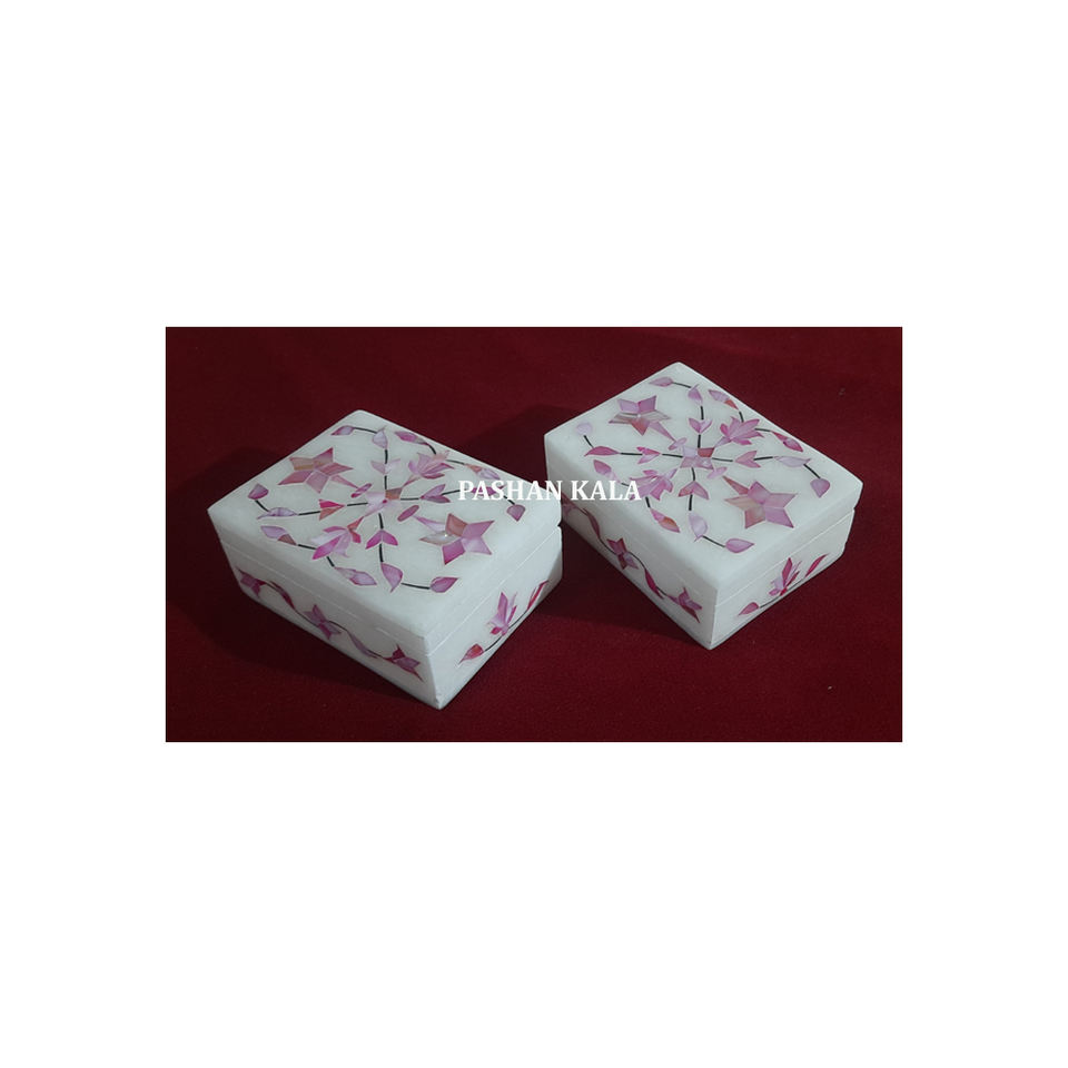 Coffret cadeau de bijoux en incrustation de fleurs de forme rectangulaire en marbre blanc des plus attrayants et durables pour mariage et affaires