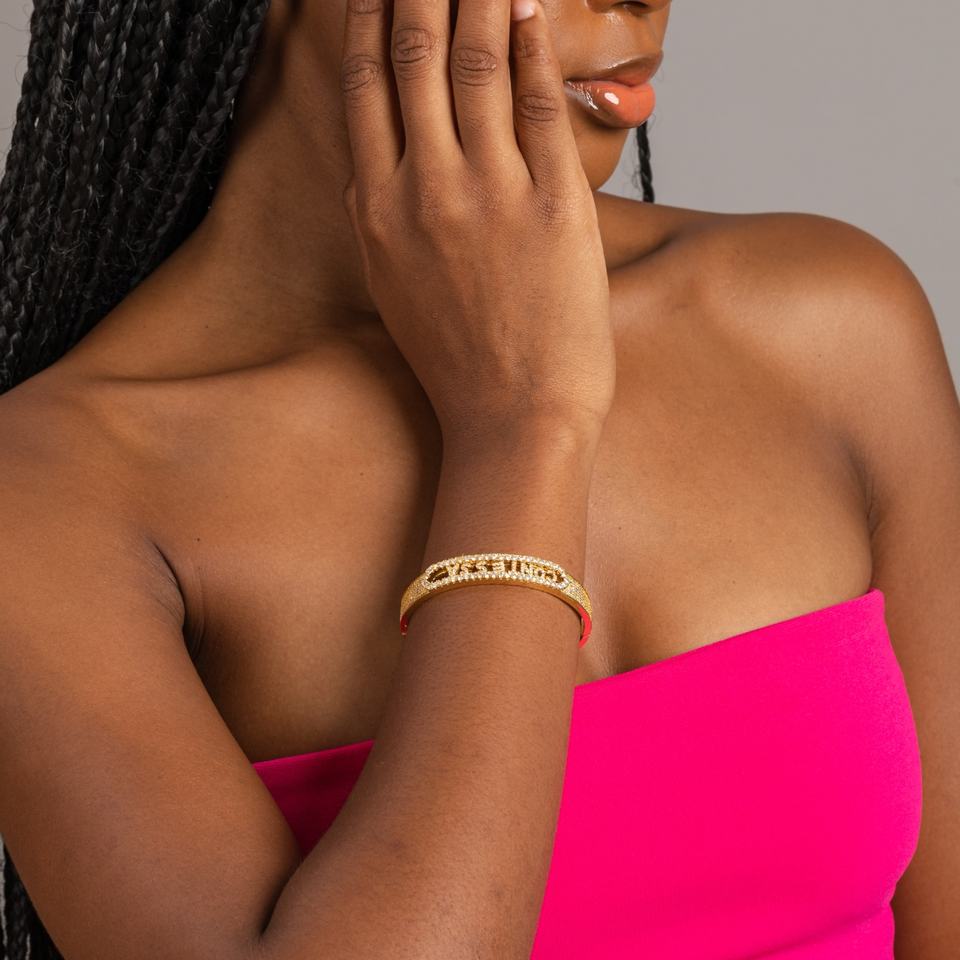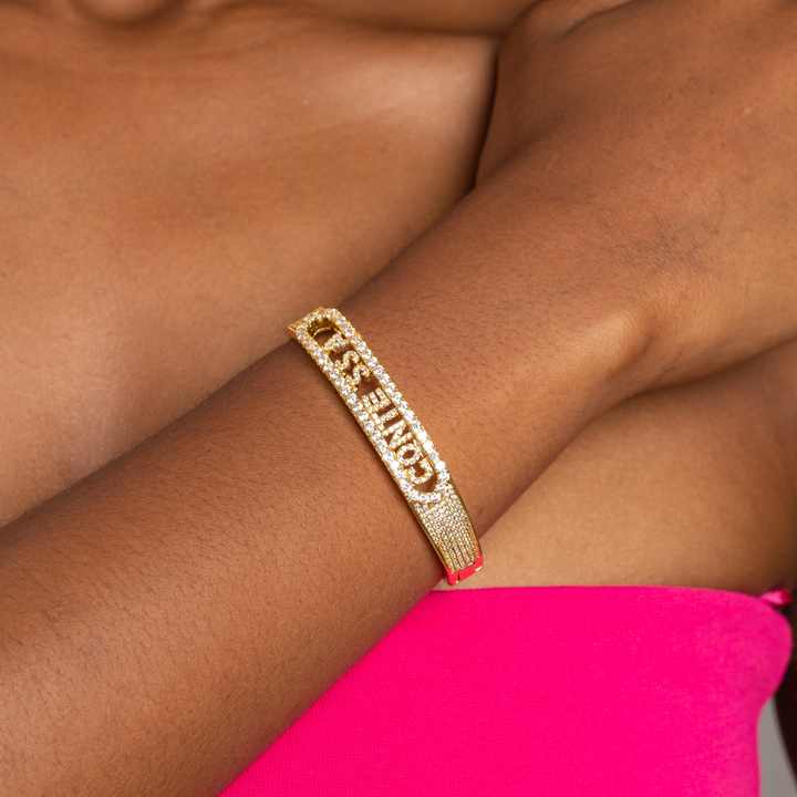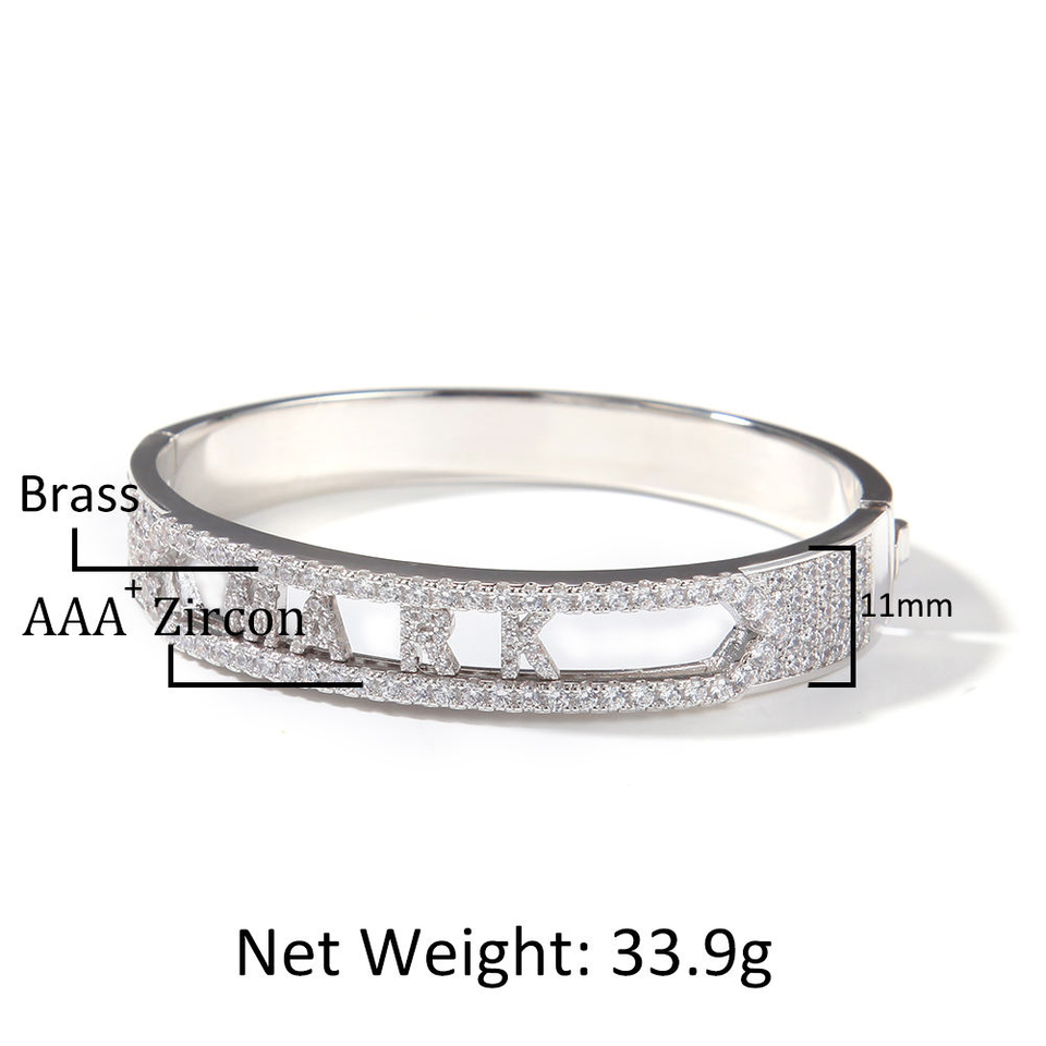 Uwin personnalisé nom coulissant lettre Bracelet glacé cubique zircone Bracelet manchette pour femmes hommes Hip Hop bijoux cadeau