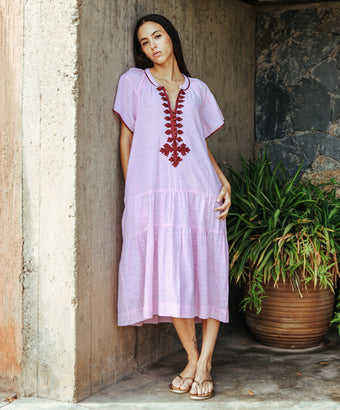 Uxbridge Eco-Friendly Midi Dress Lightweight Woven Tiered Cut Hard-Working Staple From Morning to Night