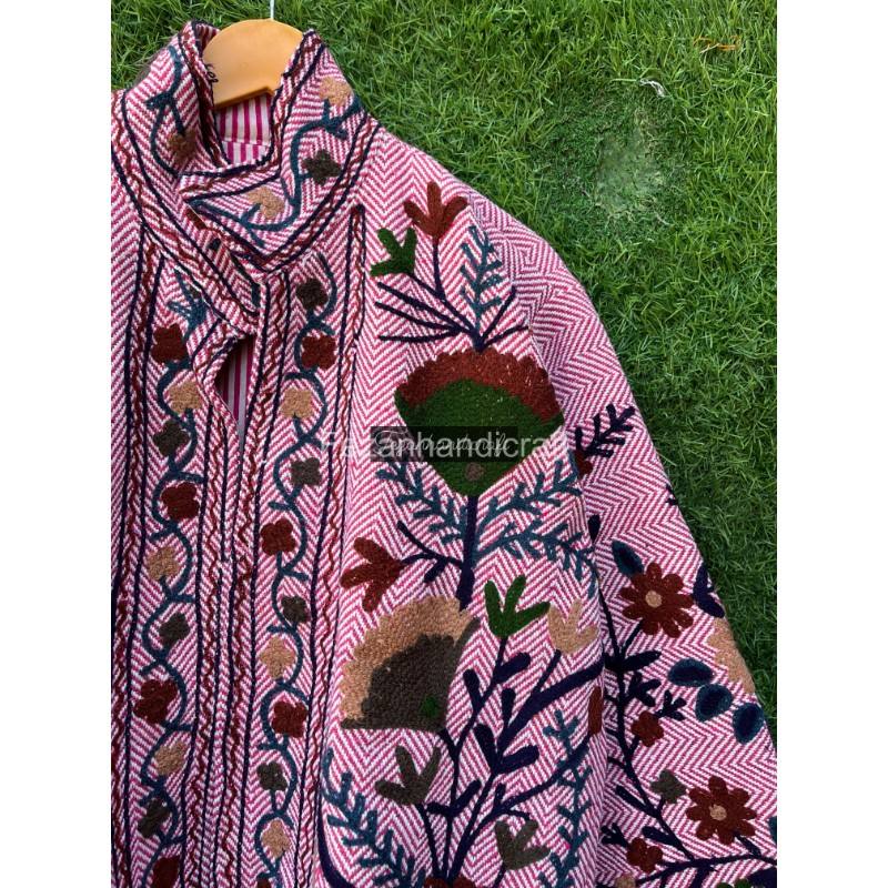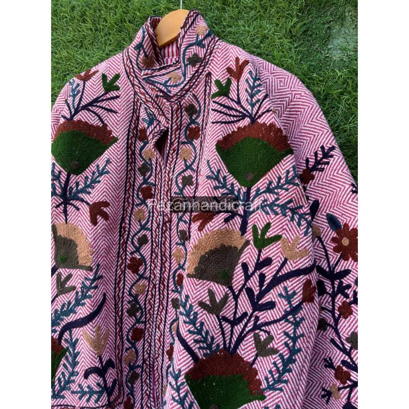 Manteau de broderie ouzbek veste courte Suzani tissu de jute veste courte manteau femmes porter à l'intérieur doublure à la main Khadi veste manteau