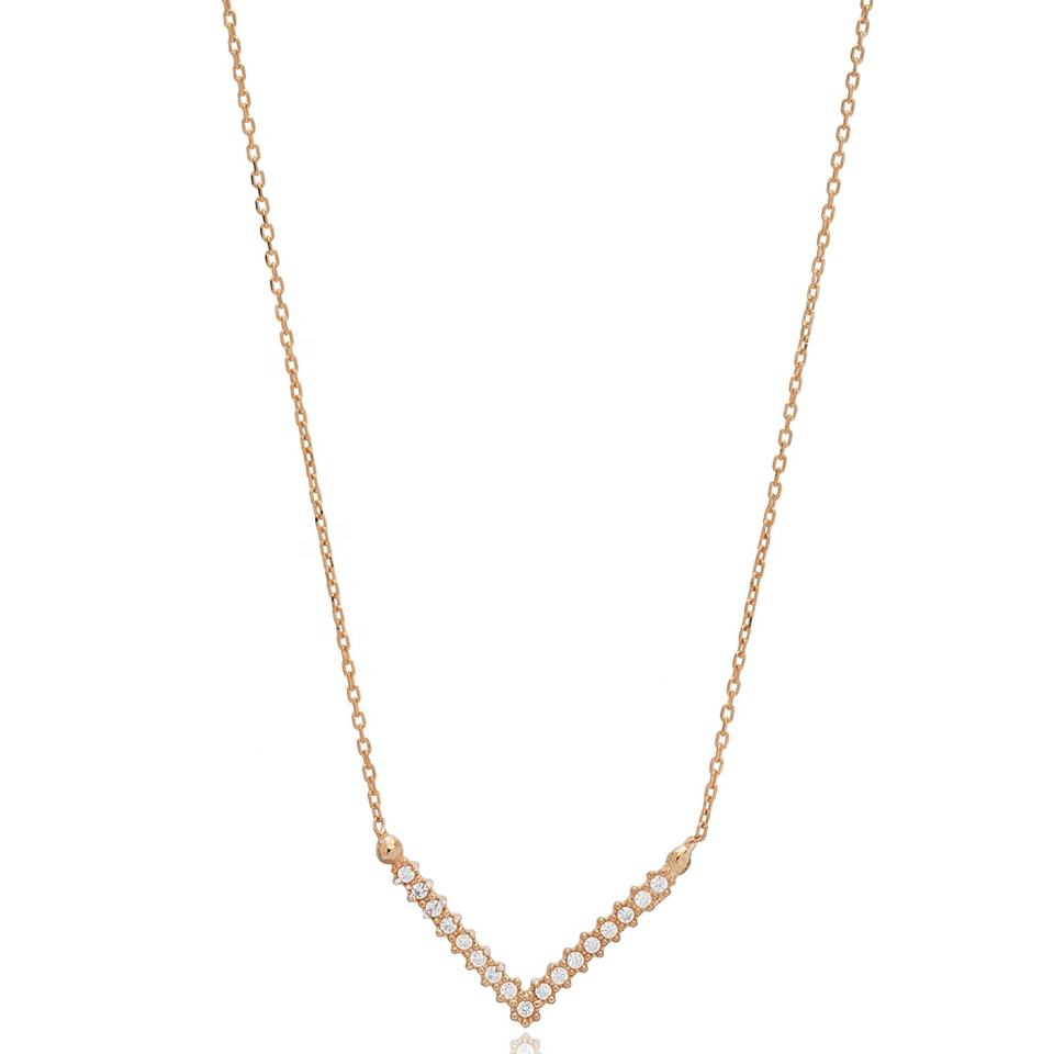 V Design clair Zircon pierre pendentif à breloque turc fait à la main 925 bijoux en argent Sterling