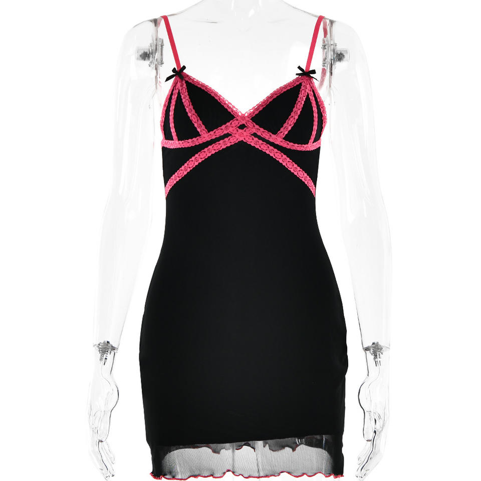 Robe mini moulante à col en V et dos nu, taille ajustée, transparente, pour soirée ou décontractée, jupe courte, design patchwork