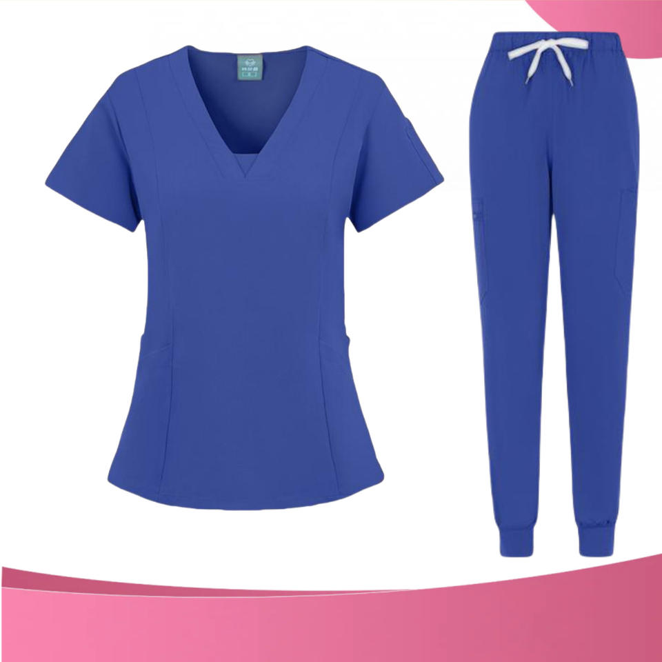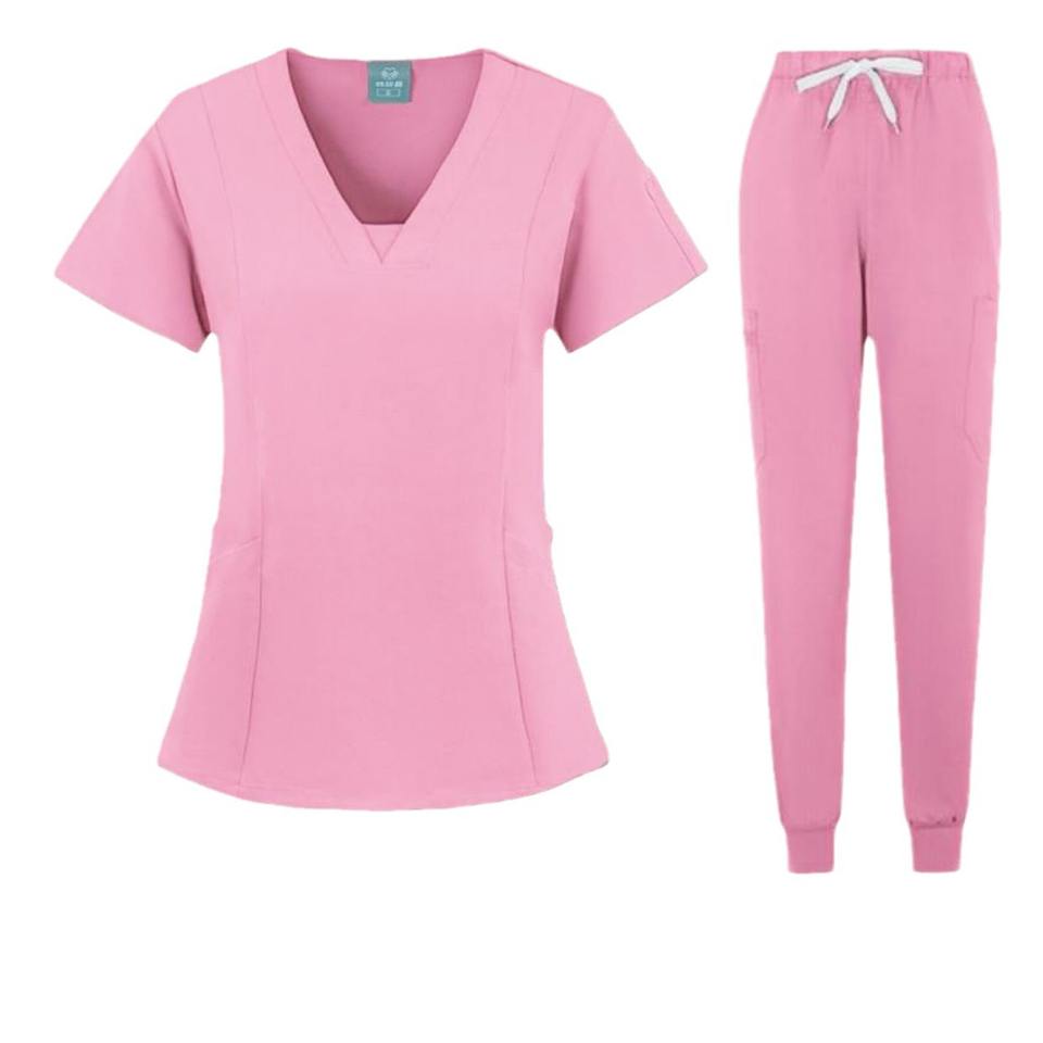 V Neck Short Sleeve Scrub Set Women's Hospital Uniform Knitted Moisture Wicking Split Set Pink Green Blue Purple