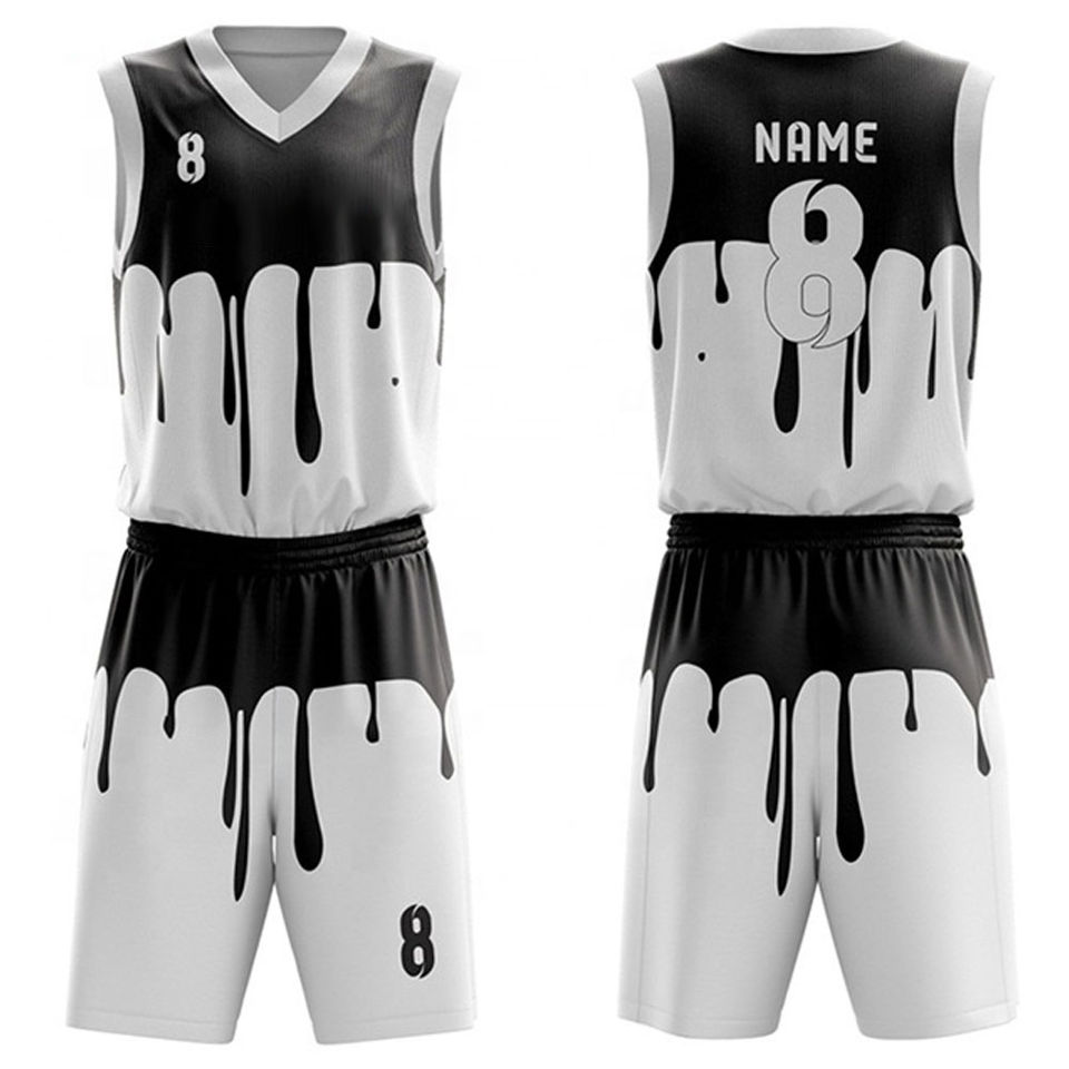 Uniforme de basket-ball en polyester imprimé par sublimation à col en V respirant séchage rapide uniforme de basket-ball léger à la mode