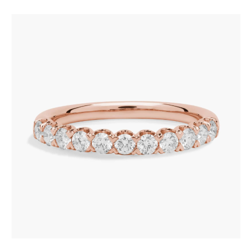 V-Prong Pave Diamond Ring in 14k Rose Gold Premium Lab Grown Diamond Eternity Ring For Women Featuring Sparkling Stones