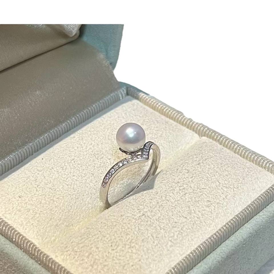 V-Shape S925 Silver Pearl Ring 6-7MM Round Clean Beads Good Quality Small Fresh Simple Design Adjustable Size