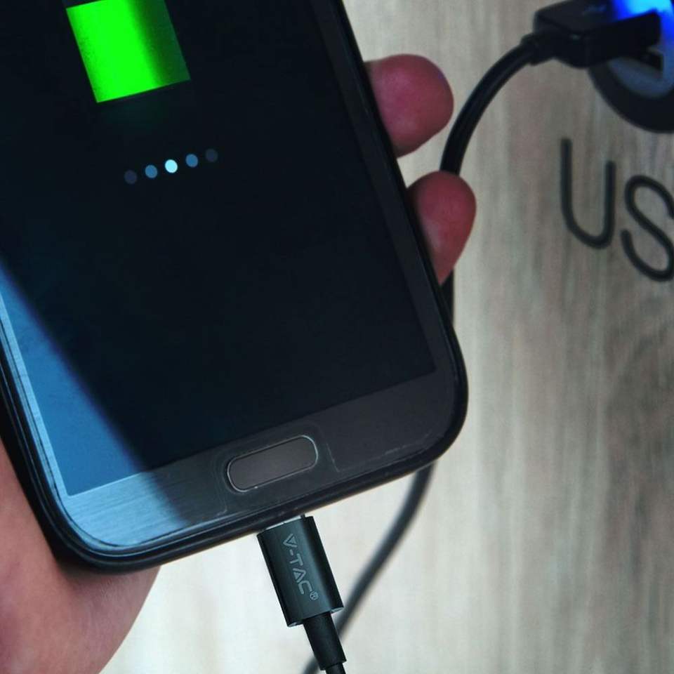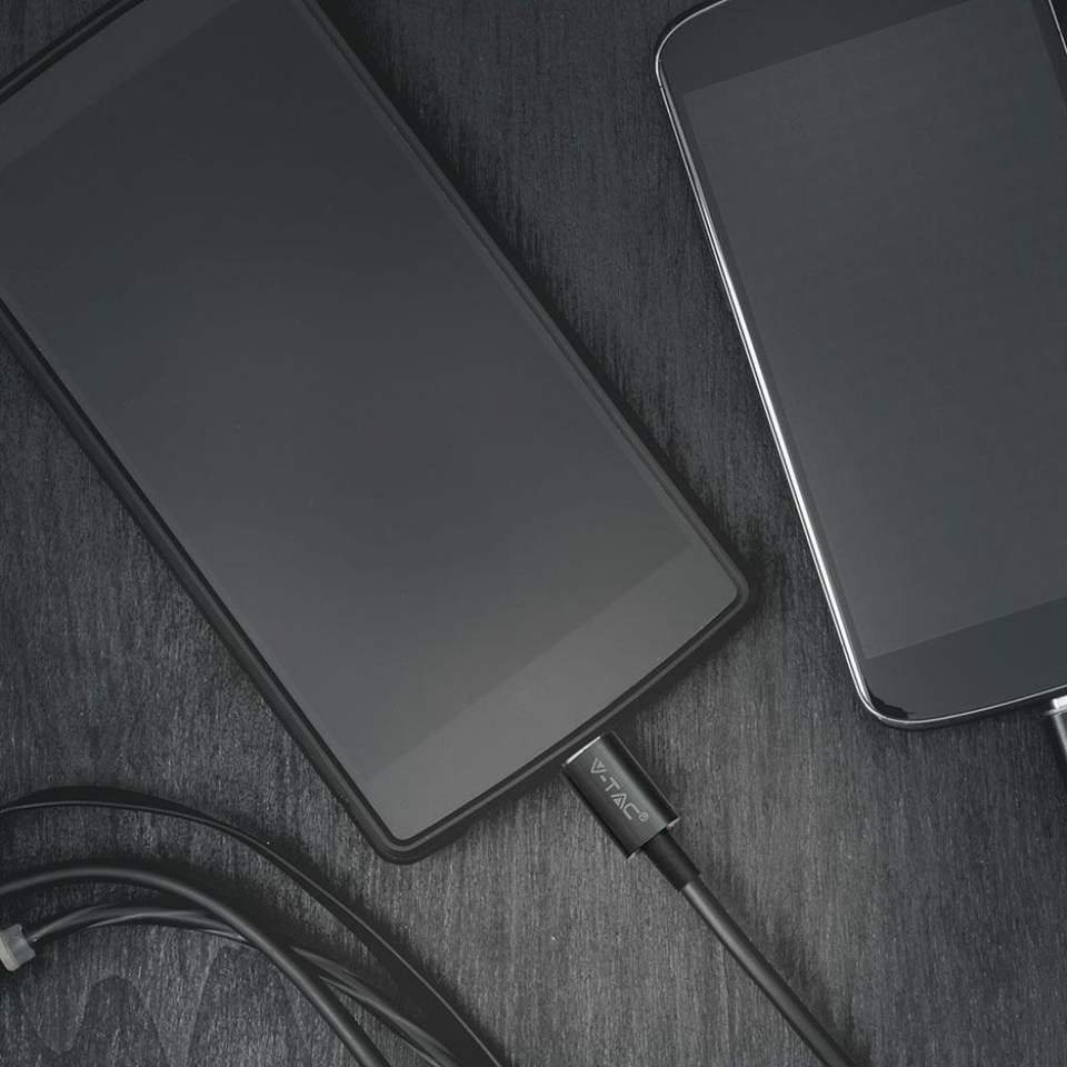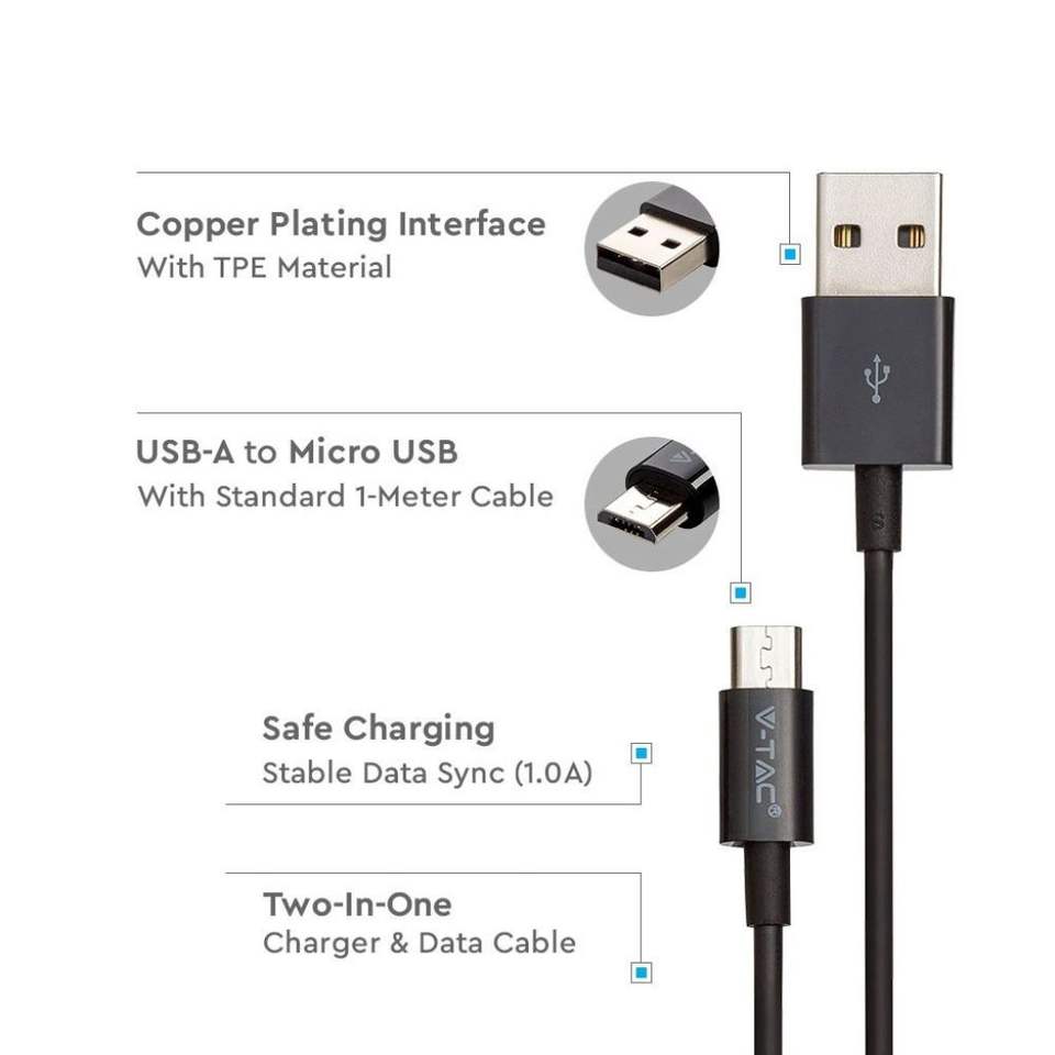 V-TAC Câble Micro-USB vers USB-A 1m Charge 1A Série Argent Couleur Noire