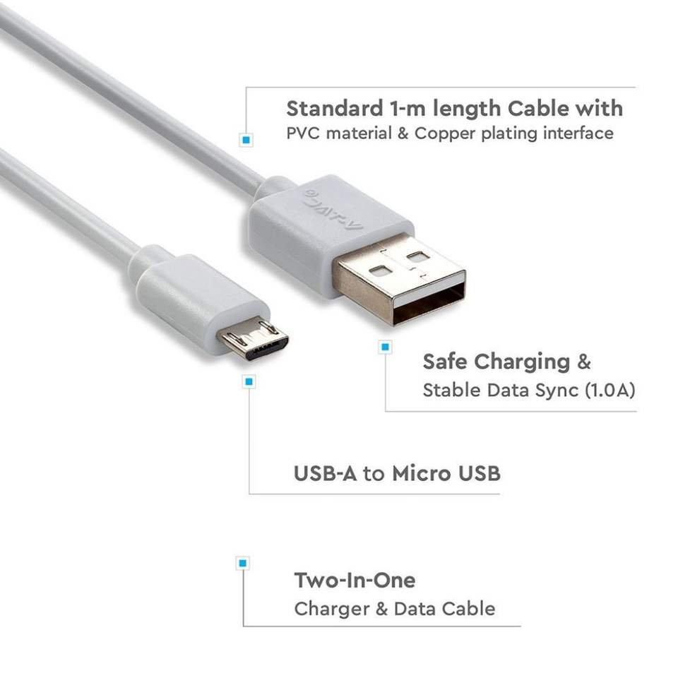 V-TAC Câble Micro-USB vers USB-A 1m Charge 1A Pearl Series Couleur Blanche