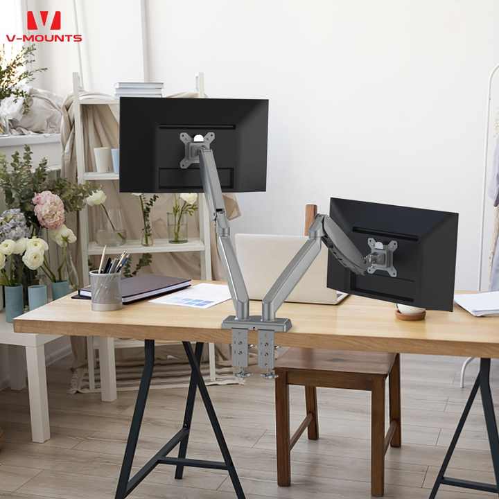 Bras de moniteur double V-mounts en aluminium avec ressort pneumatique supportant le poids de divers écrans
