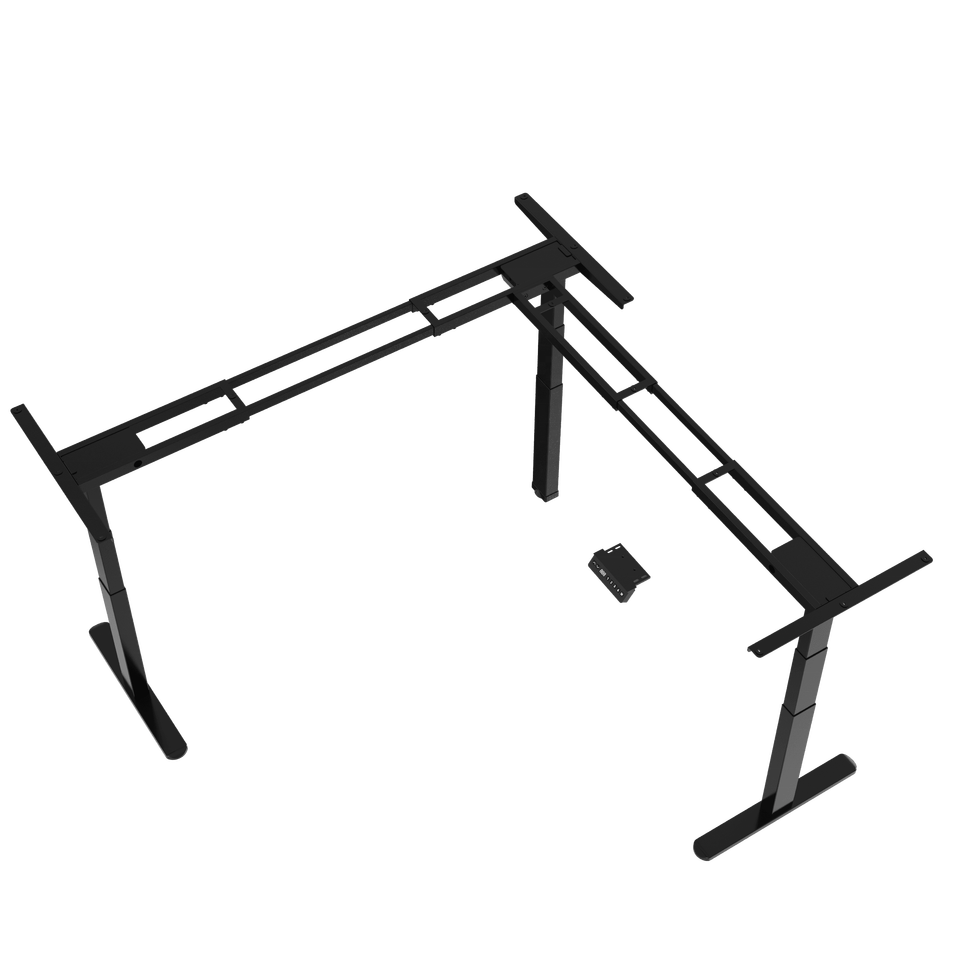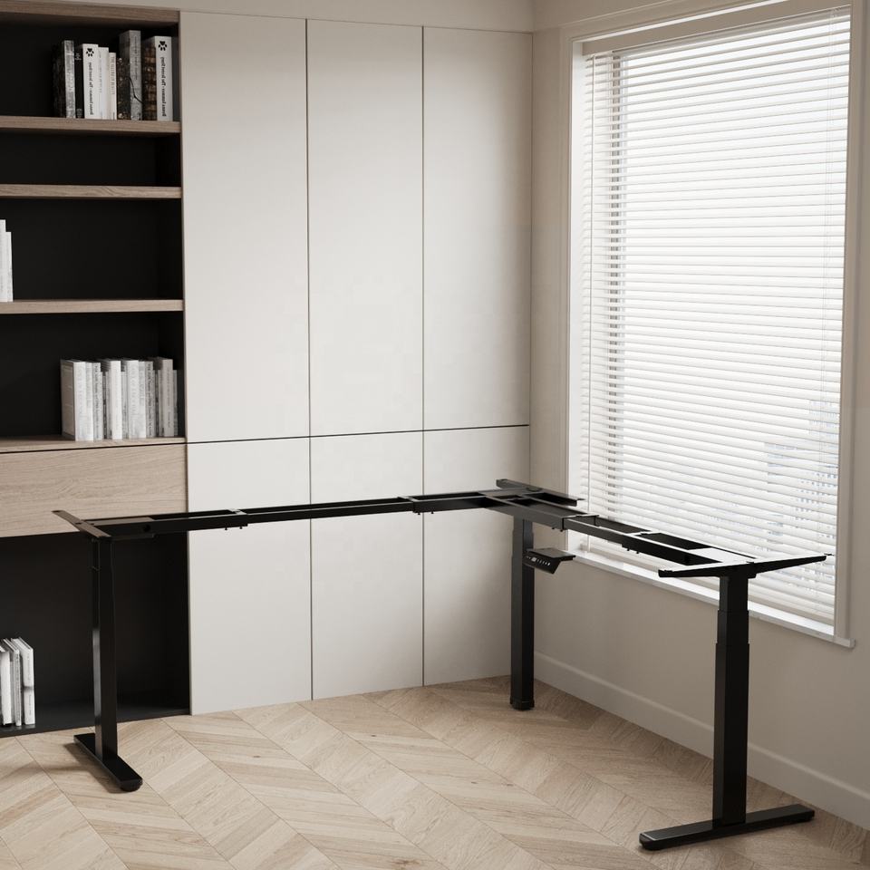 Cadre de bureau debout à trois moteurs électriques ErgoTech Modern Home Office, bureau en forme de L, capacité de 120 kg, JSD3-02-L-Z