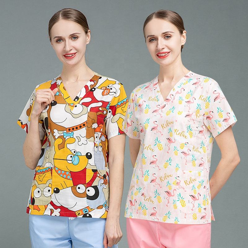 Col en V 3 poches haut motifs imprimés hommes et femmes gommages infirmière à la mode cosmique gentillesse gommages motif personnalisé couverture en coton