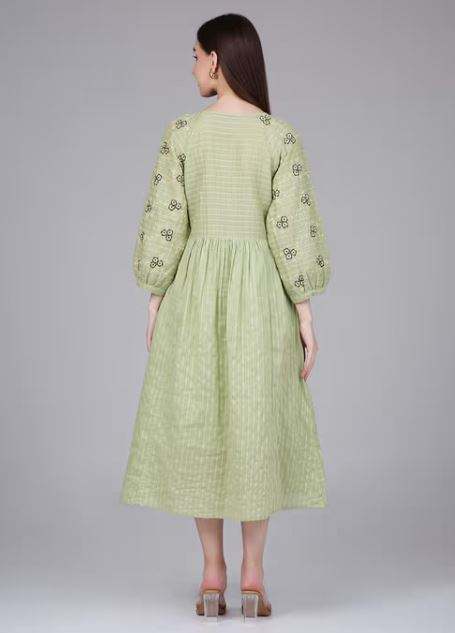 Robe longue unie à col en V, de haute qualité, avec logo personnalisé, style été pour femmes, robe ample en coton et lin, manches mi-longues, décontractée