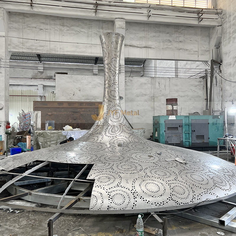 Sculpture d'art de jardin moderne polie V01 en acier inoxydable, grande sculpture d'extérieur
