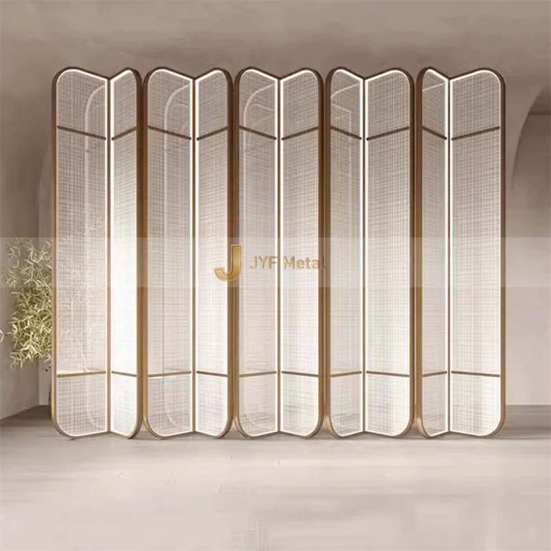 V300 Luxury Style Living Room Folding Partition Shiny Gold Decorative Room Divider