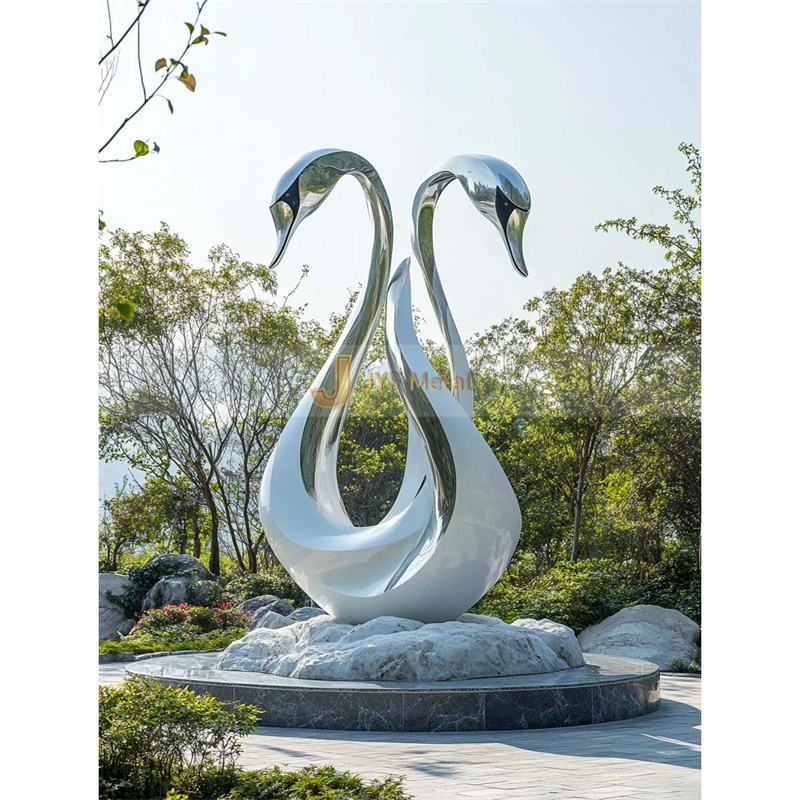 V337 New Arrival Garden Sculpture Outdoor Modern Stainless Steel Swan Statue
