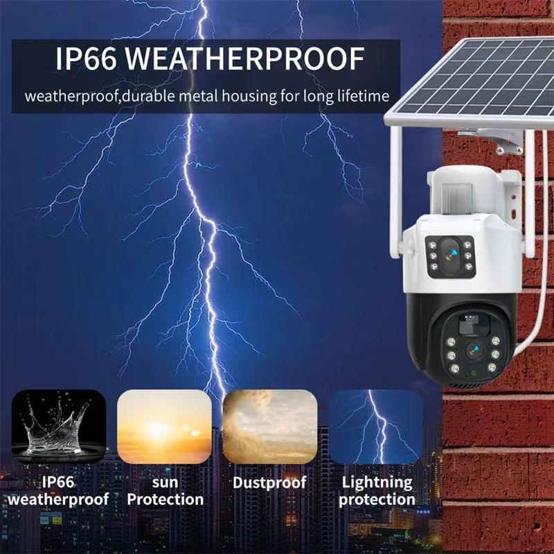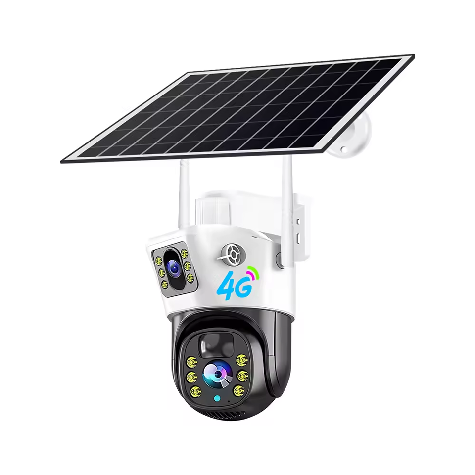 Caméra solaire Ptz V380 4mp 4G à double objectif Caméra Cctv de sécurité à double objectif Caméra 4G de surveillance alimentée en extérieur Caméra solaire à double objectif 4G