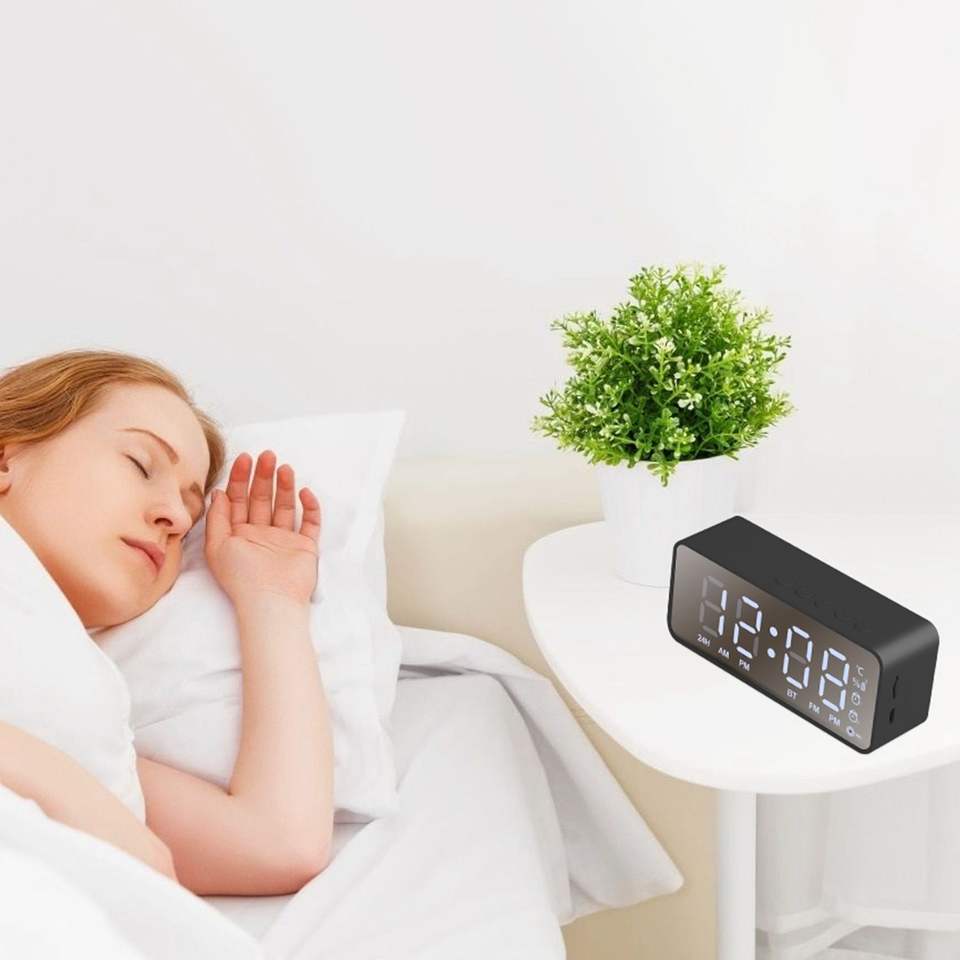 Réveil numérique intelligent sans fil V5.0 avec radio FM, miroir LED et haut-parleur