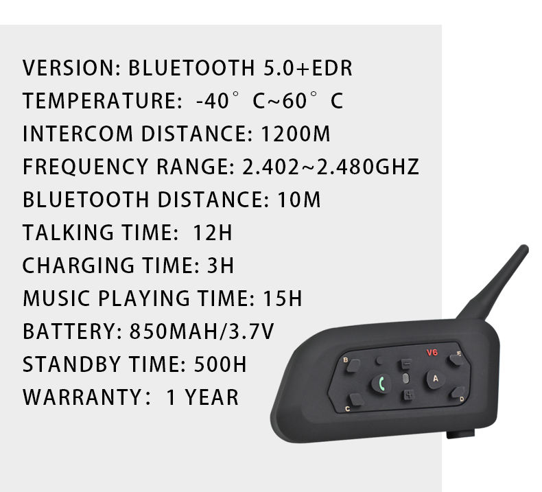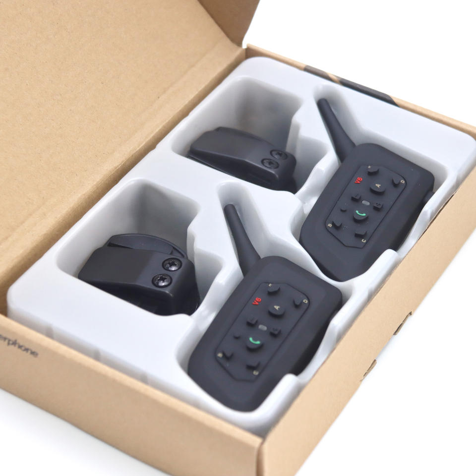 Intercom Bluetooth pour motos V6, intercom pour casque pour 2 motards, connexion pour 6 motards, casque avec batterie 850 mAh - Prix d'usine