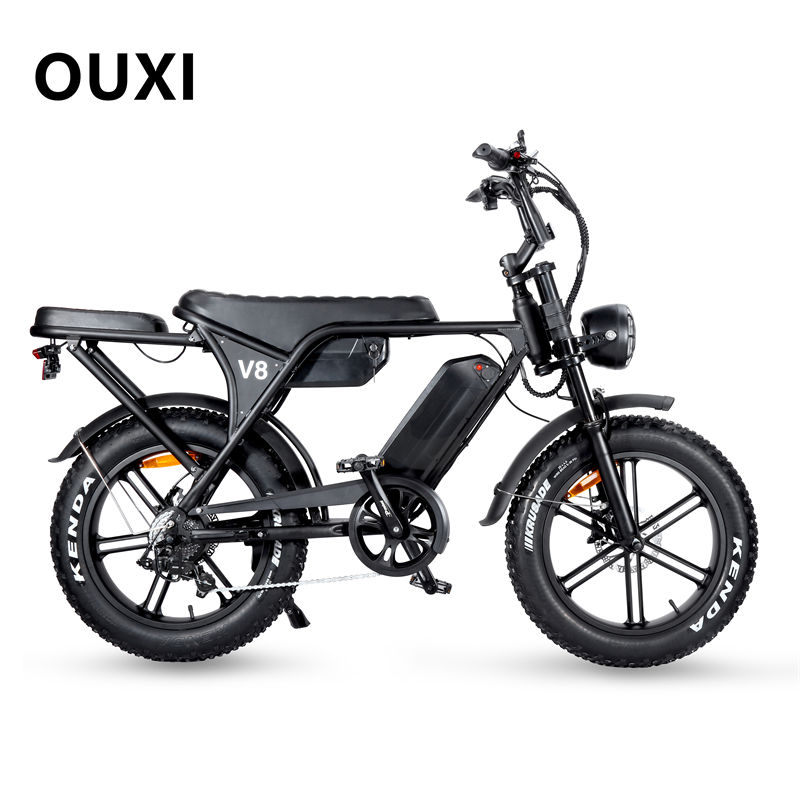 OUXI V8 4.0 Vélo électrique VTT 20×4 pouces, 250 W, batterie amovible 48 V 15 Ah, 50–65 km, 25 km/h, moteur moyeu arrière, Shimano 7 vitesses