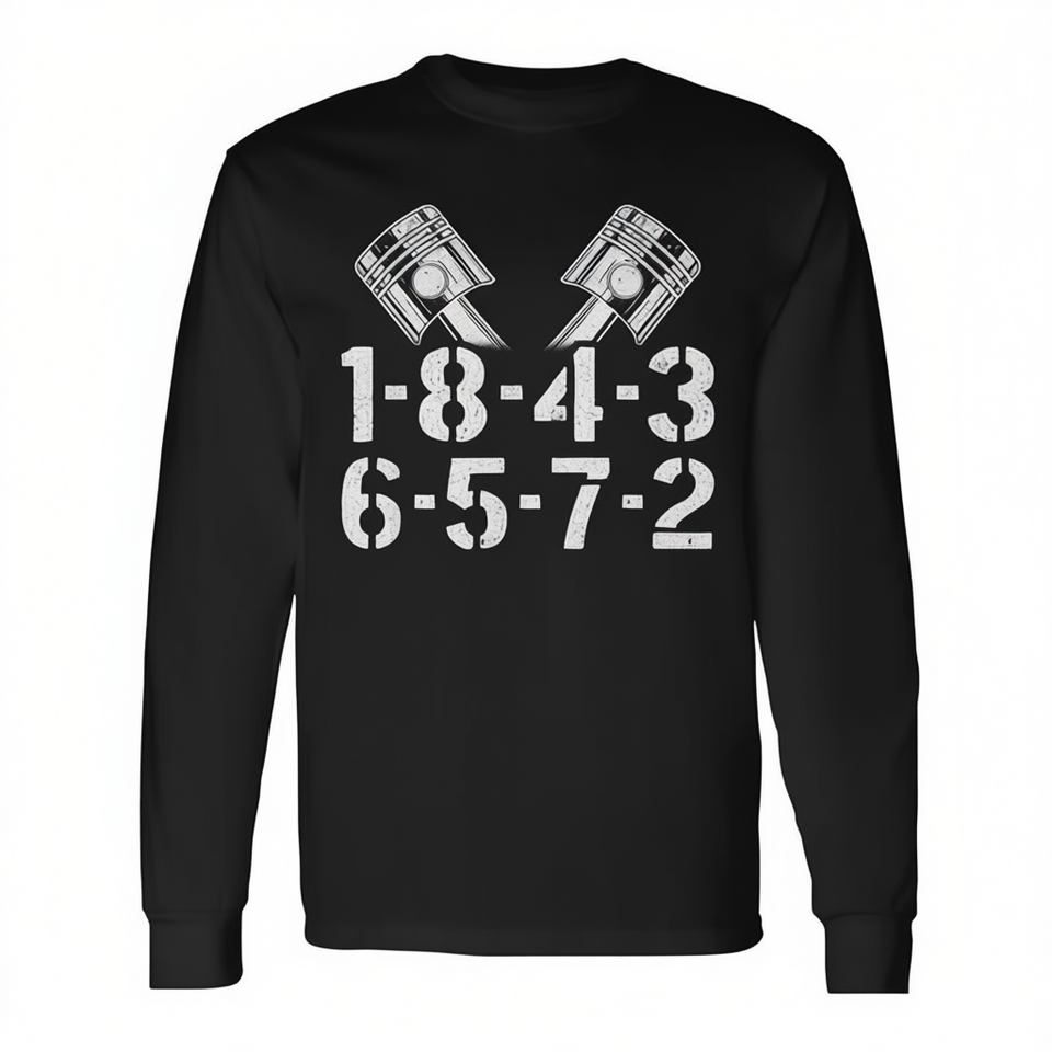 T-shirt à manches longues V8 Firing Order pour homme passionné de voitures, motif piston moteur 1-8-4-3-6-5-7-2