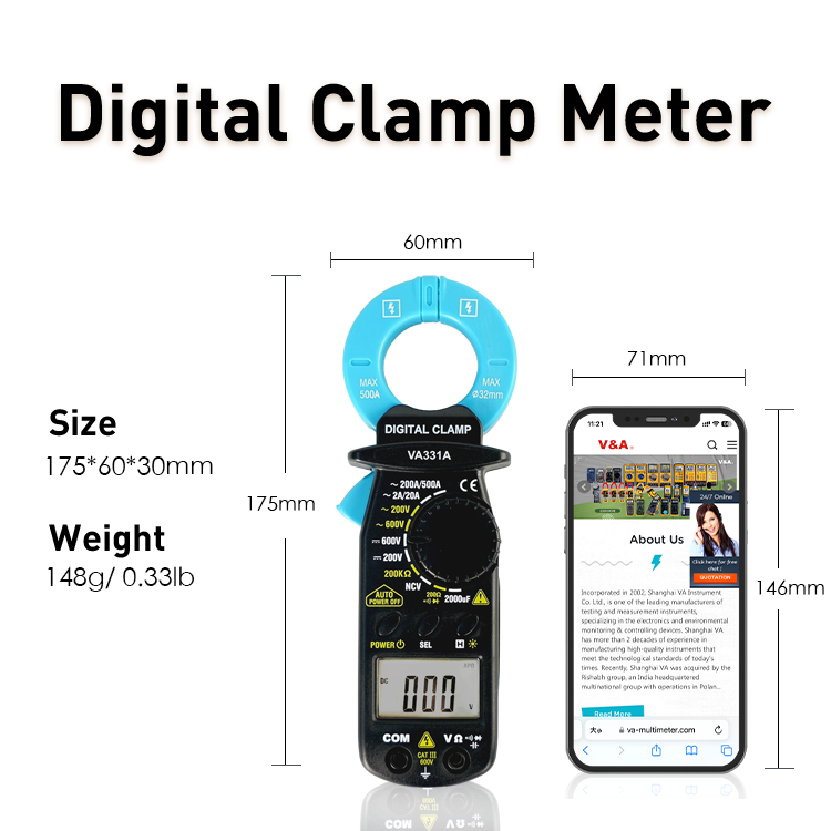 Pince multimètre numérique VA331A Mini voltmètre ampèremètre rétro-éclairage AC DC capacité de tension NCV Ohm résistance Diode de continuité