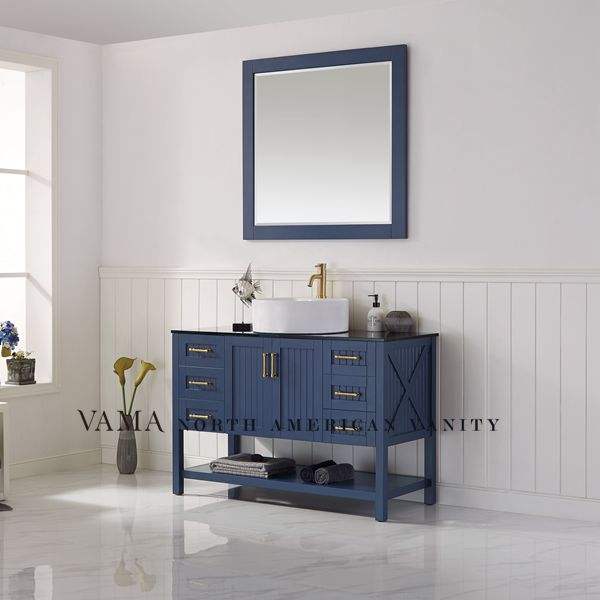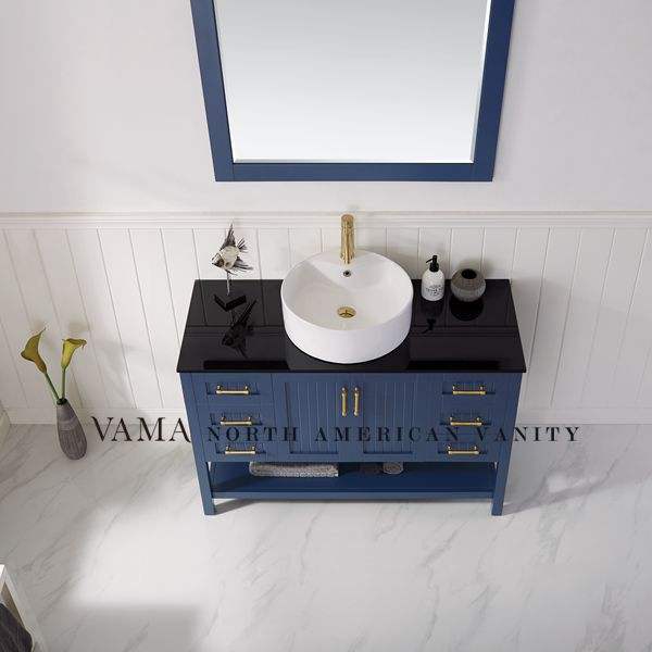 VAMA — vanité de salle de bains avec dessus en verre, classique, utilisé en tissu bleu, évier, meuble de salle de bains, 48 pouces, 756048B