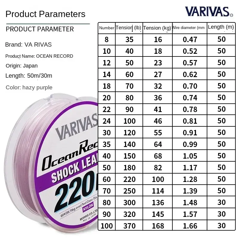 VARIVAS Original 50M fil frontal grand Mono pêche à la traîne thon Nylon fil fil Japon océan Record ligne flottante Original 50M avant