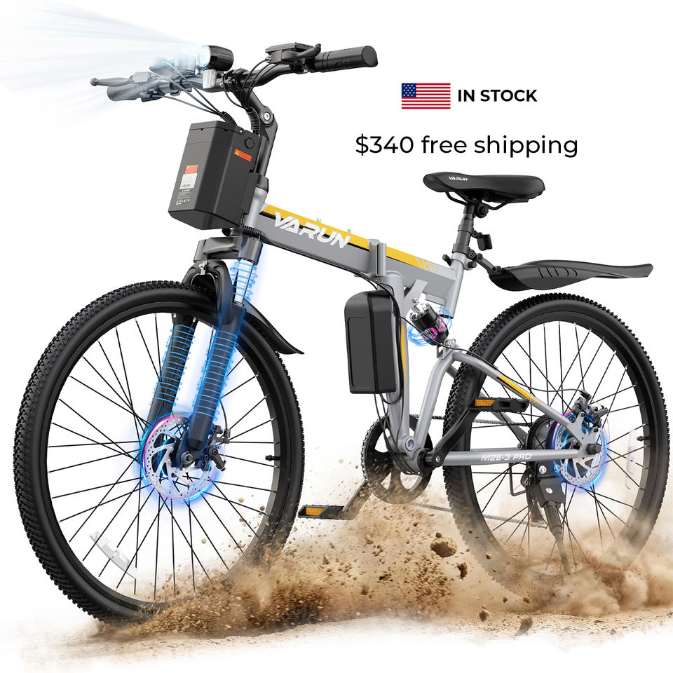 VARUN M26-3PRO Vélo électrique pliable en gros 26 pouces Double suspension Shimano 7 vitesses IP65 500W US/EU Adulte Toutes conditions météorologiques